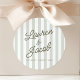 Modern Minimal Minimalist Green Stripes Wedding Classic Round Sticker