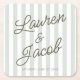 Modern Minimal Minimalist Green Stripes Wedding Square Paper Coaster