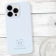iPhone case featuring your custom name and monogram initial surrounded by a thin, square border.
