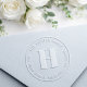 Modern monogram return address embosser in Scandinavian minimalist style.
