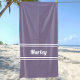Modern Minimal Monogram Script Template Purple Beach Towel