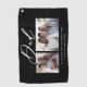 The golf towel exceeded my expectations! My husband actually approved of it! He liked the picture quality, thickness and overall usefulness of the golf towel I ordered to commemorate his lowest ever golf score. He liked it so well that I ordered 8 more towels with photos of his home golf course. Each one of the eight has the name of one of his golf group members. I will give them as party favors at my husband's 70th birthday party later this year. The different names were easy to add because the Zazzle template is so very easy to use. The colors were bright and authentic in all 9 of the towels that I made. The one of the 9 that I ordered has come out of the wash and line dry looking great.