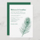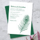 Modern Minimal Peacock Feather Green Wedding Invitation