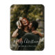 Modern Minimal 1 Photo Merry Christmas Script Overlay Magnet. Easy to personalize with your names and favorite photo.