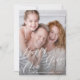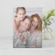 Simple stylish minimal trendy photo overlay chic white calligraphy and snowflakes Happy New Year greeting card template personalized with your photo, and family name