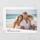 Use a horizontal or landscape photo and make a unique and trendy photo postcard. This modern minimal design includes a diagonal color block with text to add any names and text. If you need to move anything around, click on the customize button to make changes.