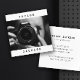 Modern, minimal photographer features a photograph of hands holding a camera lens set in black and white. Personalize the text for your business. The perfect business card for photographer, designers and creative entrepreneurs.