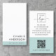 Modern, vertical business cards with your name and title on the front and customizable template fields for your contact information, logo and QR code on the back. White and aqua blue or custom colors. You can change fonts and colors, move and resize elements with the design tool.