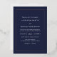 These modern and elegant wedding invitations feature white text on a dark, midnight blue background, with a rose gold foil border.