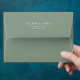 Expectations met; I liked that I had the opportunity to include our address on the back of the envelope. This color matched very well with my save the date. The color was the same as shown above. I had our address labeled on the back of the envelope and the font/printing met my expectations.