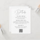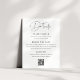 Modern minimal all-in-one enclosure card for your baby shower features three custom fields for additional details; shown with a diaper raffle, book request, and registry QR code. Chic minimalist black and white design coordinates with our Modern Minimalist Script baby shower invitation suite.