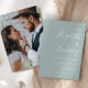 Plain white envelopes are included with paper invitations and will come to fit the invitation size you select. If you don’t need the envelopes, you may choose to not receive them by selecting the dropdown below "Envelopes" and choosing "None." If you’d like to have a design on your envelopes, you can browse all of these available envelopes to find the design that complements your Modern Minimal Script Photo Sea Glass Wedding Invitation.
