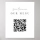 Make it easy for your wedding or event guests to view your menu selections with this frameable QR code sign. "Scan to view our menu" appears at the top. Enter the url for your menu, and the QR code will update. Guests can scan the code with their phones to see your menu selections.