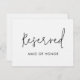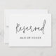 Modern black and white chair reservation card, minimal design with handwritten script - perfect as a wedding seat reservation sign.