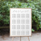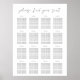 Modern and minimal wedding guest seating chart provides space for up to 16 tables of 10, or 160 guests. "Please find your seat" or your choice of text appears at the top in soft black lettering.