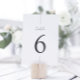 Simple and chic table numbers make an elegant statement at your wedding or event. Design features "table" in handwritten script lettering, with the table beneath in timeless serif typography. Design repeats on back. Colorway: Ash, a soft black.