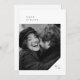 Invite elegance with our Modern Minimal Script Typography Photo Wedding Save the Date. This design showcases couple's in a joyful black and white photograph, highlighting a minimalist style that blends modern aesthetics with classic elegance.