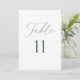 A modern table number card featuring minimal script and lines, perfect for guiding guests to their seats with a simple, refined look that complements any contemporary wedding setting.