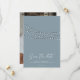The matter paper is our sample of choice -- it's a reasonably priced, good quality, nice feeling paper stock. We were a little concerned the muted rustic blues might not reproduce all that well (usually by light colored samples), but they're just gorgeous! The white lettering is perfect in combination with the blue background, and the typography is all easy to read.