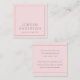 Square, light pink or any color, professional business cards or personal profile cards with a thin border. Customizable name and title/company name on the front. On the back is a customizable template field for your contact information. Fonts and colors are customizable.