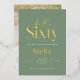 Modern minimal typography simple photo sage green and gold 60th birthday invitation. Part of a contemporary collection.