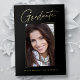 Clean, trendy, modern and elegant "Photo" graduation announcement gold foil cards (your choice of gold silver or rose foil), featuring design elements of modern text with a unique calligraphy ink script. The graduate's photo on the front of the card is accented with a delicate & minimalist partial boarder. The back of the card offers personalized text spaces for information about your graduation or can be cleared if you wish to hand write a message. Black with gold foil or easily customize the background to match your school's primary color or any color of your choice. Perfect for the high school, college and university grad student seniors.