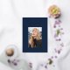 Clean, trendy, modern and elegant "Photo" graduation announcement gold foil cards (your choice of gold silver or rose foil), featuring design elements of modern text with a unique calligraphy ink script. The graduate's photo on the front of the card is accented with a delicate & minimalist partial boarder. The back of the card offers personalized text spaces for information about your graduation or can be cleared if you wish to hand write a message. Navy blue with gold foil or easily customize the background to match your school's primary color or any color of your choice. Perfect for the high school, college and university grad student seniors.
