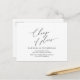 This is the modern minimal design themed, in Black font, Wedding party invitation Rescheduled (postponed / postponement) postcard (change of plan) . It is the perfect and elegant way to make the reschedule announcement to your friends and family.
