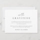 Designed to match our Inline wedding invitations. A beautiful typography based flat thank you card design with a minimalist feel, featuring "with gratitude" in modern handwritten script and classic serif lettering. Personalize with your custom pre-printed message and signature, and add 3 photos (one vertical and two horizontal) to the back.