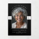 This elegant funeral program template features a timeless black and white design with two custom full color photos, offering a beautiful way to honor your loved one’s memory. The minimalist layout uses clean lines, sophisticated typography, and a refined, modern style to create a respectful and heartfelt tribute. Thoughtfully organized sections for acknowledgments, order of service, and obituary are framed by subtle accents, giving the program a polished and professional appearance. The classic monochrome color scheme conveys warmth, dignity, and grace, making this template ideal for memorial services, celebrations of life, and remembrance ceremonies.