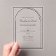 Make a bold statement with this modern minimalist acrylic wedding invitation. Designed with a sleek arched border and elegant script font, this clear acrylic card exudes luxury and sophistication. Its transparent design seamlessly complements any wedding theme, from industrial chic and modern elegance to black-tie formal. Perfect for couples seeking a timeless yet innovative style, this invitation is fully customizable with your wedding details. The durable acrylic material ensures your invitation feels as unique and special as your big day. Whether displayed as part of your decor or sent to guests, it’s guaranteed to impress.