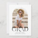 Celebrate years of hard work with our modern minimalist graduation announcement invitation in a simple black and white color scheme. This on modern and minimalist design features a single photo framed in the trendy arch shape. The word "GRAD" overlaps the bottom of the photo. Flip it over to find the graduation party details.