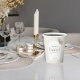 Crafted with a serene neutral color palette dominated by soft beige tones, this pillar candle exudes a chic and inviting aesthetic. The design prominently features an elegant and gracefully framing the personalized text on the candle's smooth surface. A delicate butterfly adorns the top section, adding a touch of whimsical charm.
