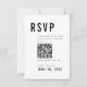 This bold black-and-white modern QR code RSVP card features clean typography and a simple layout for an effortlessly chic look. Perfect for contemporary or city weddings, it includes response options and an easy-to-read date line. Fully customizable to match your wedding details.