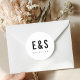Seal your wedding envelopes with modern sophistication using this bold black-and-white round sticker. Featuring clean typography and minimalist design, it’s perfect for adding a stylish finishing touch to invitations, thank-you cards, and other stationery in your wedding suite. Fully customizable with your names, initials, and date.