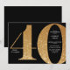 Modern minimalist black and gold 40th birthday invitation