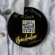 Modern Minimalist Black and Gold Bachelor QR Code Button