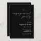 Plain white envelopes are included with paper invitations and will come to fit the invitation size you select. If you don’t need the envelopes, you may choose to not receive them by selecting the dropdown below "Envelopes" and choosing "None." If you’d like to have a design on your envelopes, you can browse all of these available envelopes to find the design that complements your Modern Minimalist Black And White Engagement Party Invitation.