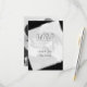 Theme Parties' minimalist casual black and white wedding RSVP card design features your favorite engagement photo angled as a design element, giving your invitation modern geometric style. And your engagement picture is automatically converted to black and white and repeated on the reverse side. The design is accented with hand-lettered typography paired with modern block text. #MinimalistWedding #ModernWedding #PhotoInvitation #CasualWedding