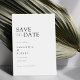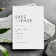 Modern wedding save the date card featuring minimalist typography in black and white color.