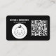 Make a lasting impression with this sleek, modern black business card design. Fully customizable with your personal or business details, including name, title, contact information, social media, and a scannable QR code for quick access to your website or portfolio. Ideal for entrepreneurs, creatives, consultants, and professionals. Personalize it easily to reflect your unique brand identity.