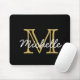 Modern Minimalist Black Gold Monogram Script Mouse Pad