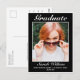 Graduation announcement postcard. Stylish modern minimalist black white design with a thin frame.