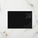 This modern minimalist | black horizontal save the date is perfect for your classy boho wedding. Its simple, unique abstract design accompanied by a contemporary minimal script and a black and white color palette gives this product a feel of elegant formal luxury while staying simplistic, chic bohemian. Keep it as is, or choose to personalize it with artwork or graphics of your choice. You can also look to other products within this collection to bring your whole wedding together!