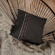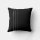 This modern black throw pillow features a minimalist design with 3 vertical lines in white, grey, and red. Great for contemporary living room or bedroom decor. Colors are fully customizable by clicking on Edit design.