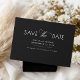 Elegant Black & White Save the Date Card. Timeless, minimal, and sophisticated — this “Save the Date” design sets the tone for a modern and classy celebration. The deep black background paired with crisp white typography creates a contrast that instantly catches the eye. Elegant script detailing on “the” adds a romantic touch, perfectly balancing the clean, modern layout.