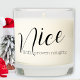 A fun modern and minimalist Christmas candle, with a "Nice until proven naughty." cheeky message! Combining sleek design with festive humor, this candle adds a touch of contemporary flair to your holiday decor. Whether placed on a mantle or given as a stocking stuffer or secret Santa gift, this chic but fun candle embodies the spirit of the season with a wink and a nod.