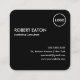 Modern Minimalist Black & White QR Code Square Business Card, editable text and logo for your unique professional business card. Round Black and White Square business card.