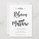 Modern Minimalist Black White Script Wedding Invitation
