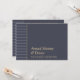 This modern and minimalist business dinner invitation has a clean design with a deep blue background and gold lettering. Custom text fields allow you to add your details.